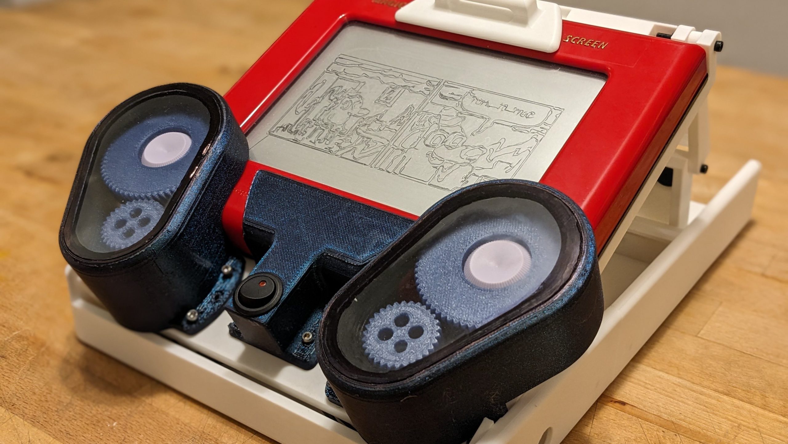 The Etch-a-Sketch was a great toy if you were somehow born with the talent to use it. For the rest of us, it was a frustrating red brick filled with weird grey sand. [Every Flavor of Robot] has taken the irritating knob-encrusted oblong and turned it into something we can all enjoy, however, by building an Etch-a-Sketch camera!